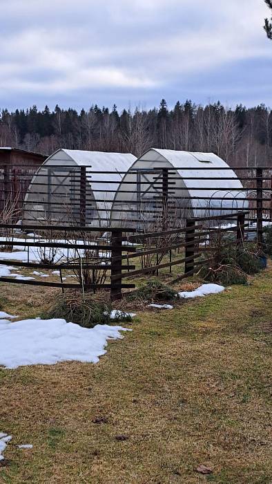 Отзыв: Конструкция нам понравилась тем, что она с усилением, форма купола такая, что снег не будет задерживаться. Мы в таком регионе снежном живем, что это важно. В теплице будут расти томаты и виноград. Если правильно выбрать сорт, виноград очень хорошо растет в теплице. И зимует хорошо, и дает плоды.