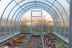 Теплица «Сигма» - отличный выбор, если вы ищете привлекательную и надежную конструкцию, которая простоит на дачном участке минимум 20 лет. Внутри удобно и приятно работать. Дверь закрывается снаружи и изнутри, для проветривания используют форточки, а на полочках между дуг найдется место для нужных садовых инструментов. В теплице «Сигма» каждая деталь продумана до мелочей и можно полностью посвятить себя уходу за растениями. Ежегодный богатый урожай станет заслуженной наградой за труды!